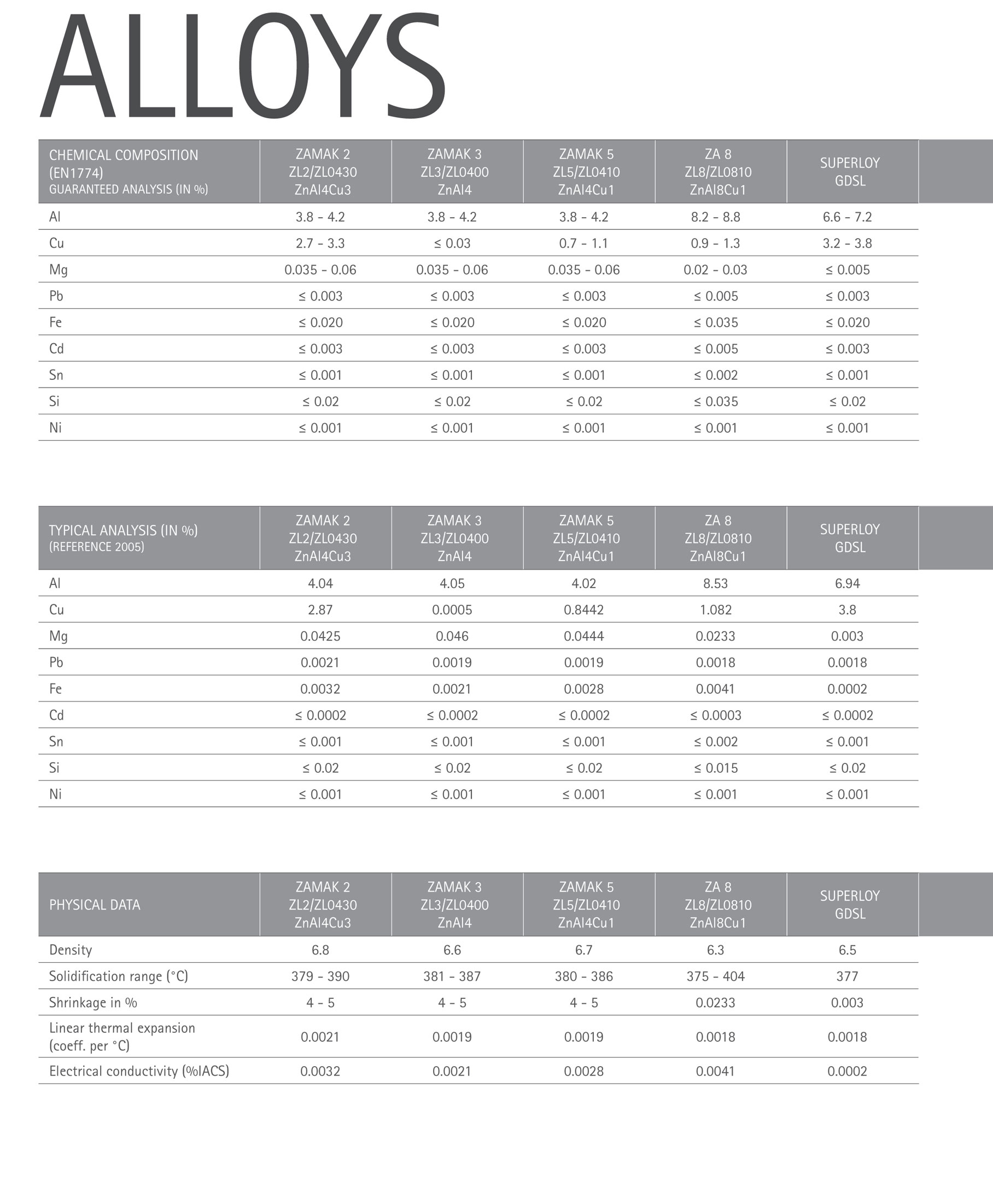 ZEP essendo una lega a base di Zinco e Alluminio gode dei prezzi sensibilmente ridotti e grazie alle sue caratteristiche tecniche può